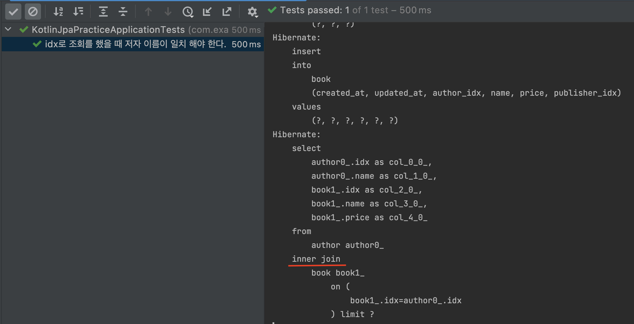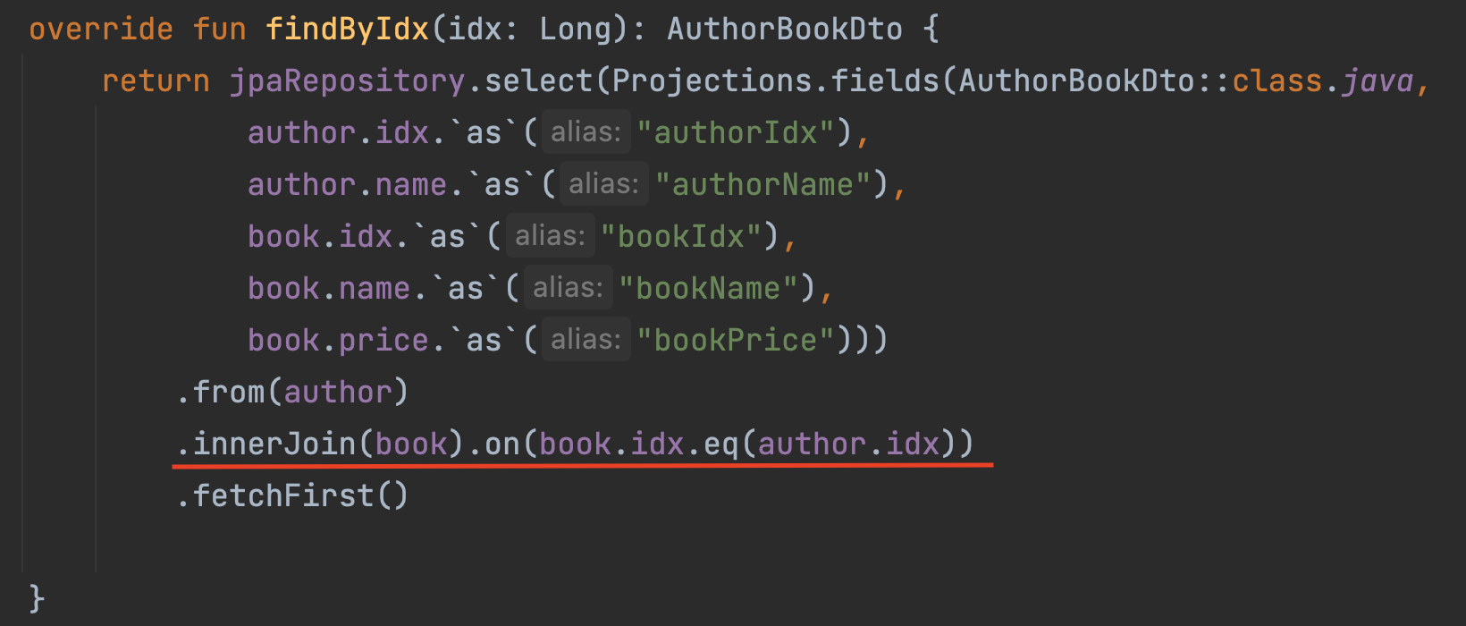 - inner join을 명시적으로 사용해서 book 엔티티를 조회합니다.