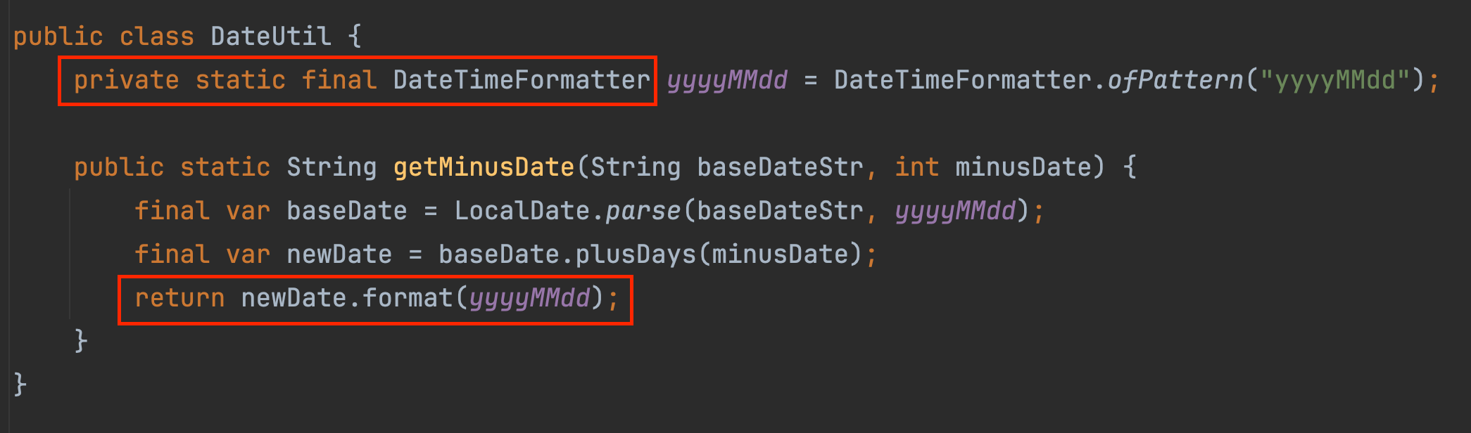 private static final SimpleDateFormat yyyyMMdd = new SimpleDateFormat("yyyyMMdd");