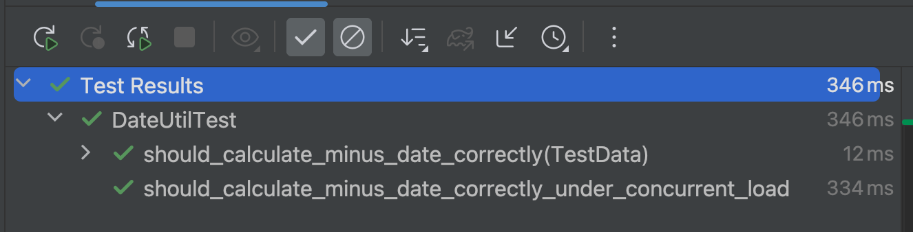 멀티스레드 환경에서 하루 전, 이틀 전을 동시에 요청합니다. 그리고 의도한 대로 결과를 반환했는지 확인합니다. 만약 의도한 날짜와 다르다면 corrupted를 증가시킵니다.